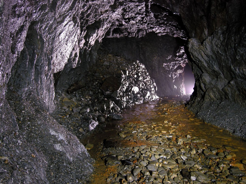 Stacking of deads forming a wall in a tunnel on the deep adit level.