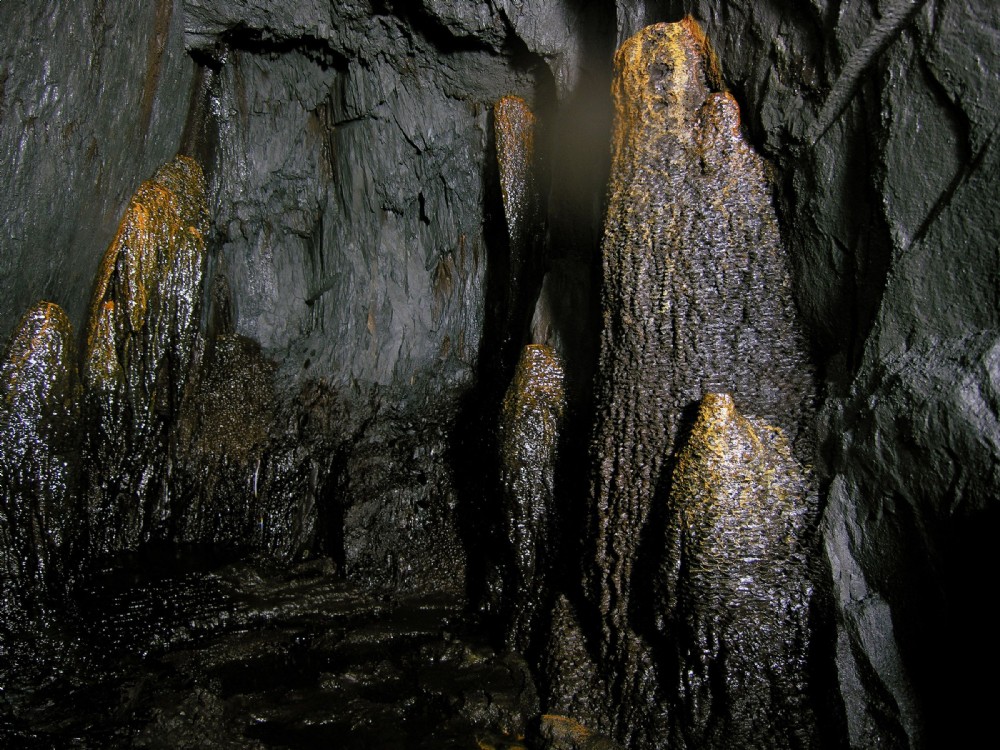 At the end of the level leading from the ore kibble are these impressive formations. Care must be taken traversing this level due to surface water concealing a false floor.