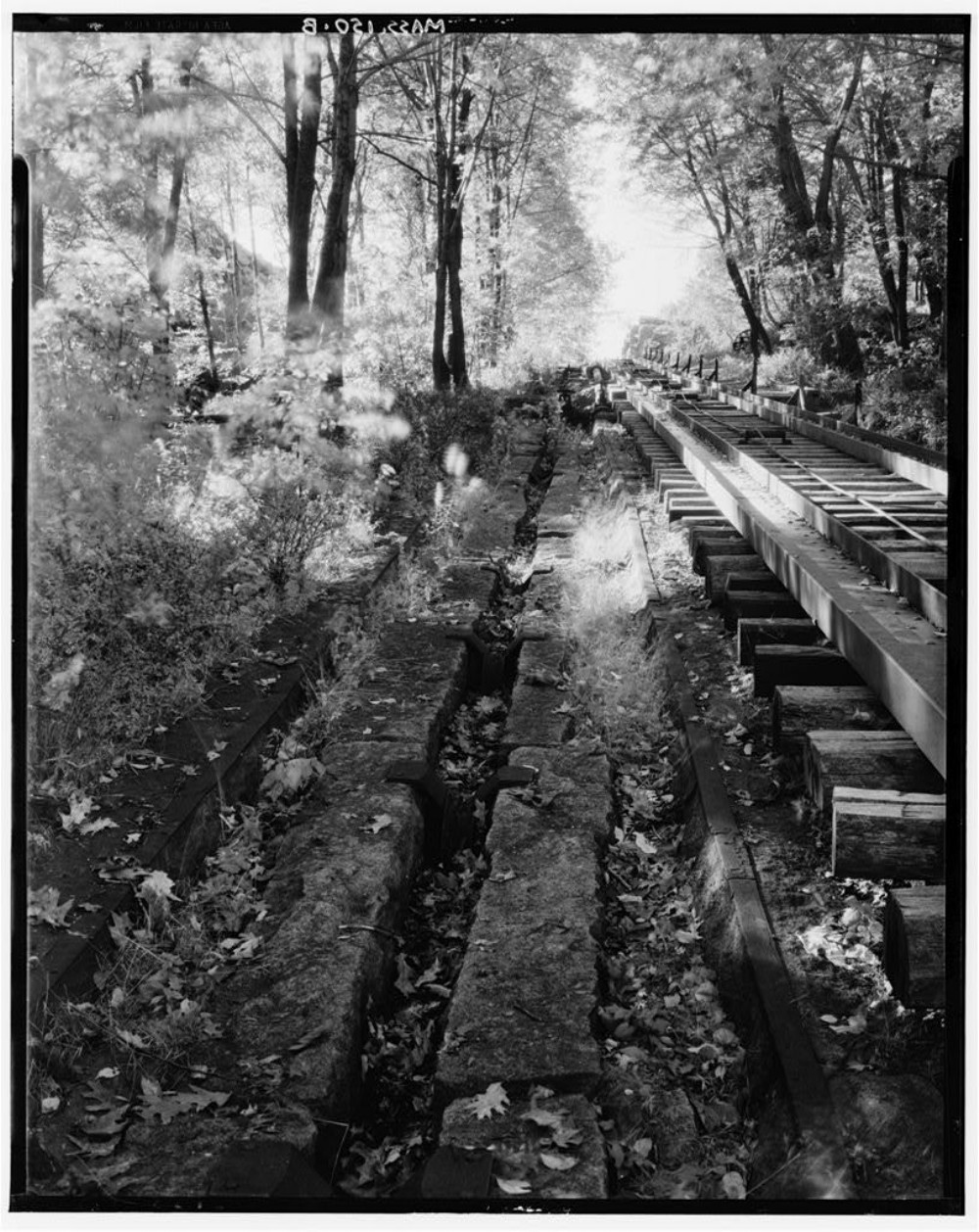 Detail of old railroad part way up incline to quarry.