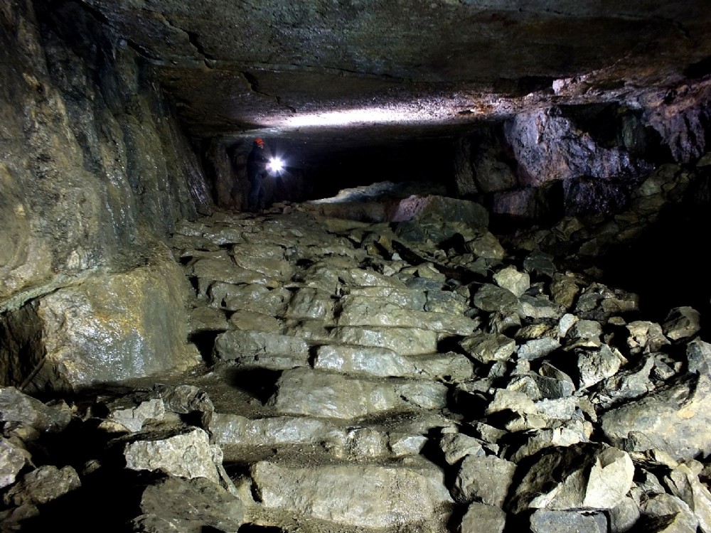 Flashgun pointing to the stairs on the right, with some fenix light painting to highlight the steps. Photo from my first underground photography visit - December 2012