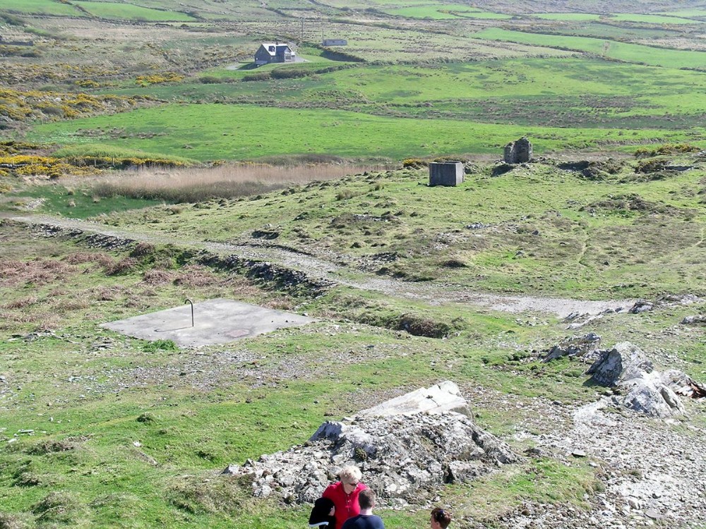 Site of Dhurode Copper Mine. View across the site with capped shaft and remains of the dressing floor (foreground) and possible miners baracks or housing in middle background.