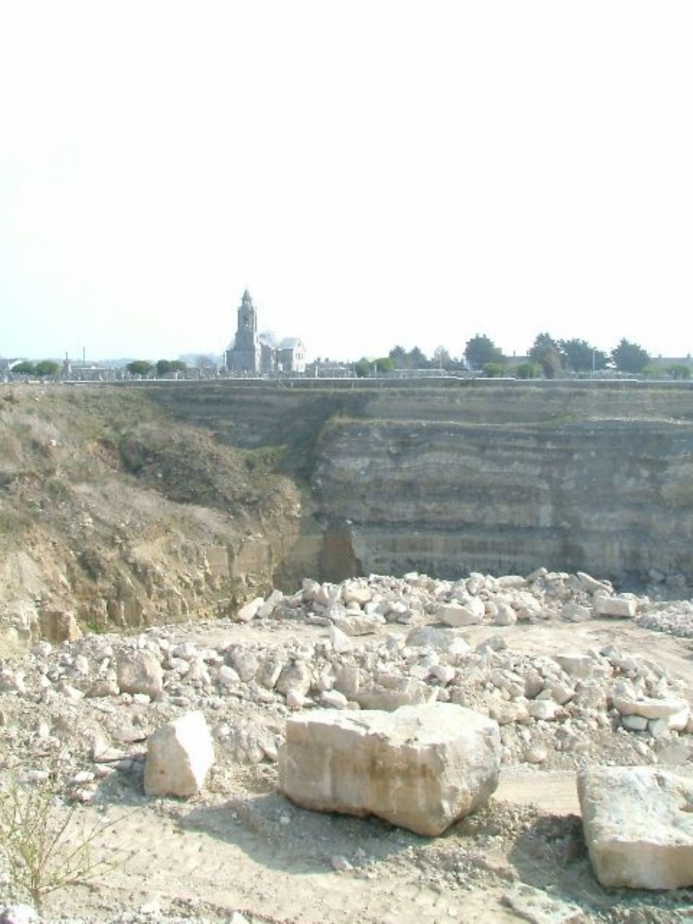 Looking acros the quarry generally to the ESE with local church made of Portland stone.