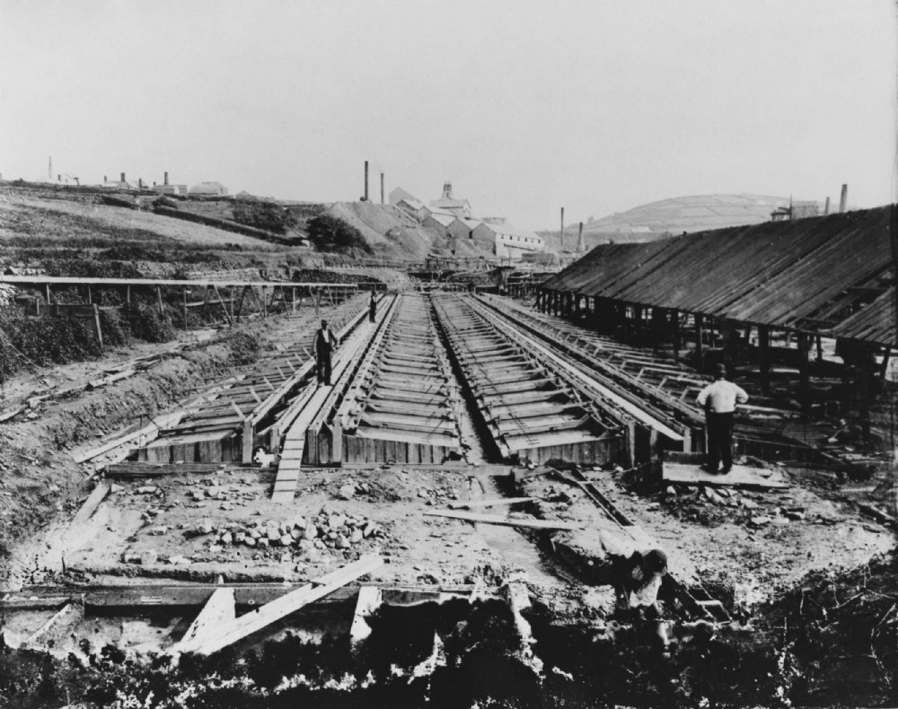 Carpenters constructing Rag Frames in the Tuckingmill Valley to catch the fines from the main dressing floors further upstream.