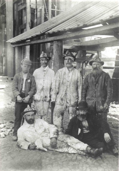 New East Shaft, Dolcoath. A very early shot indeed with men erecting the support structures and pitwork lying about everywhere.