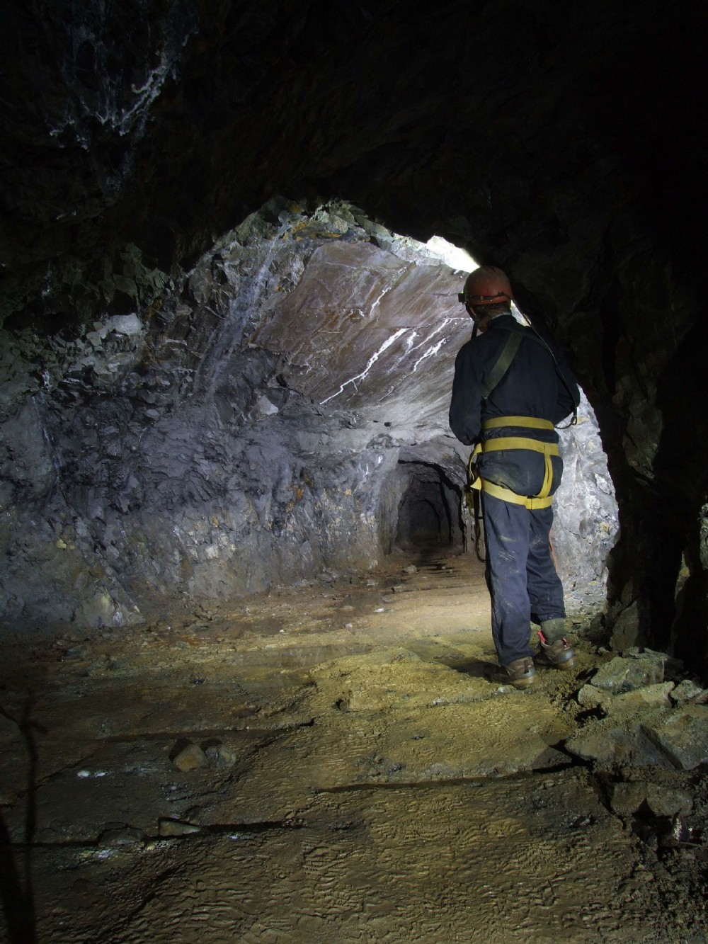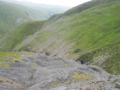 Level y Ffordd was the main tramming level of the mine in the last years of working. Laden ore trucks were raised up an incline from the level of the public road to the hoppes abobe the dressing floors. This was powerd by an 165HP Pelton turbine which also generated compressed air for the mine. The incline is a prominent feature east of the mill seen on old photographs of the mine.