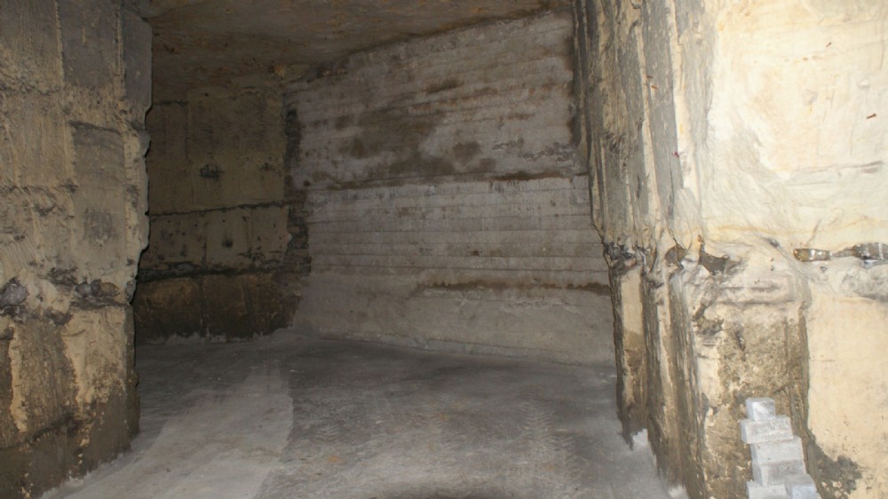 Een van de muren,geplaatst in 1958.Gelukkig,want in 1962 storte de groeve in tot achter deze muren.