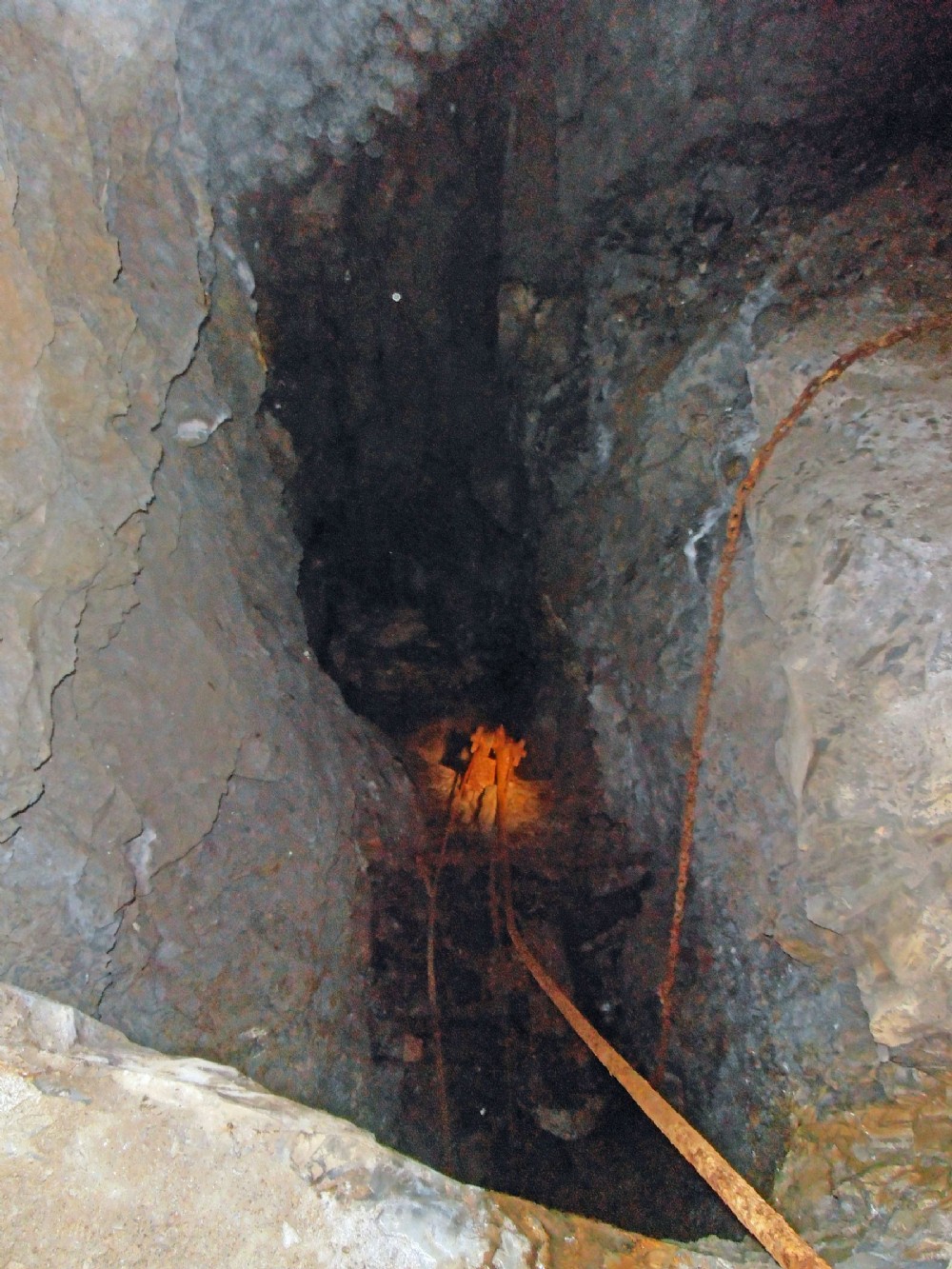 Cyfartha Shallow adit. The shaft / winze down to the Cyfartha Deep adit. Note the balance bob in the pit.