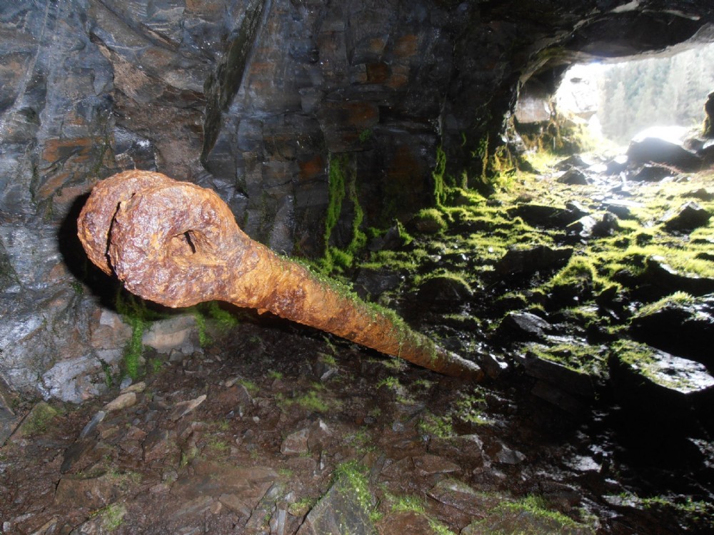 Cyfartha Shallow adit. Flatrod inside the partly blocked portal.
