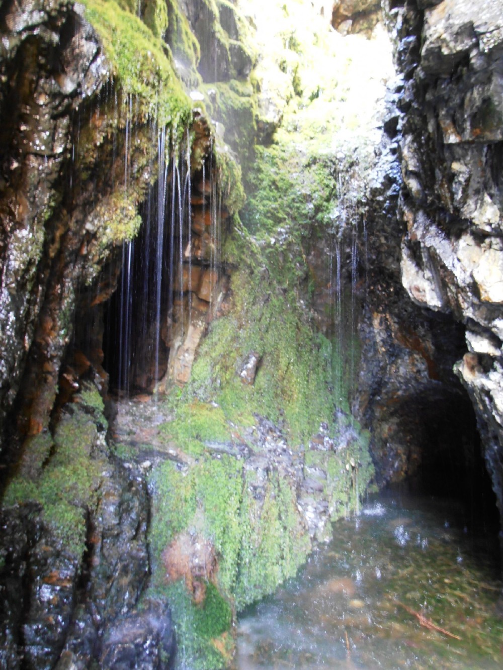 Inside the Cyfartha Cutting. The Roman / coffin-level leads off to the left half way up, and right comes to an end around the corner. Above is the former Dyfngwm leat.