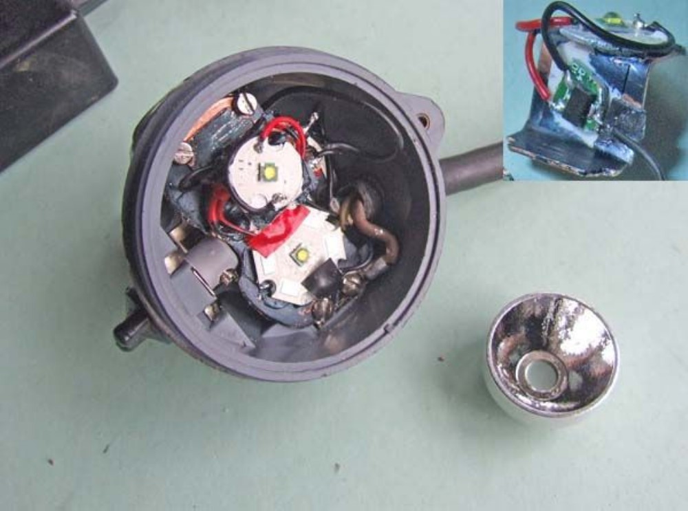 EcoStar withthe front off and reflector removed, insert is bar emitter sub module, note little AMC 7135 driver.