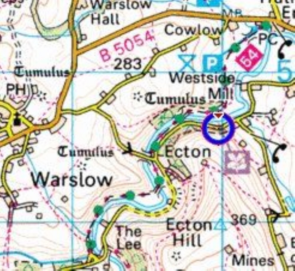 Part map of the Ecton Copper Mines location. OS Grid sk0958