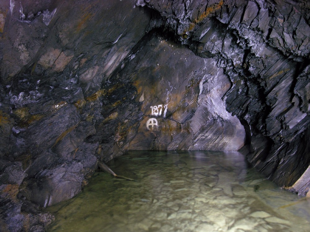 The extreme end of the floor 4 level. Possibly an original surveyor's mark and date '1877'. Certainly this area of workings are very old.