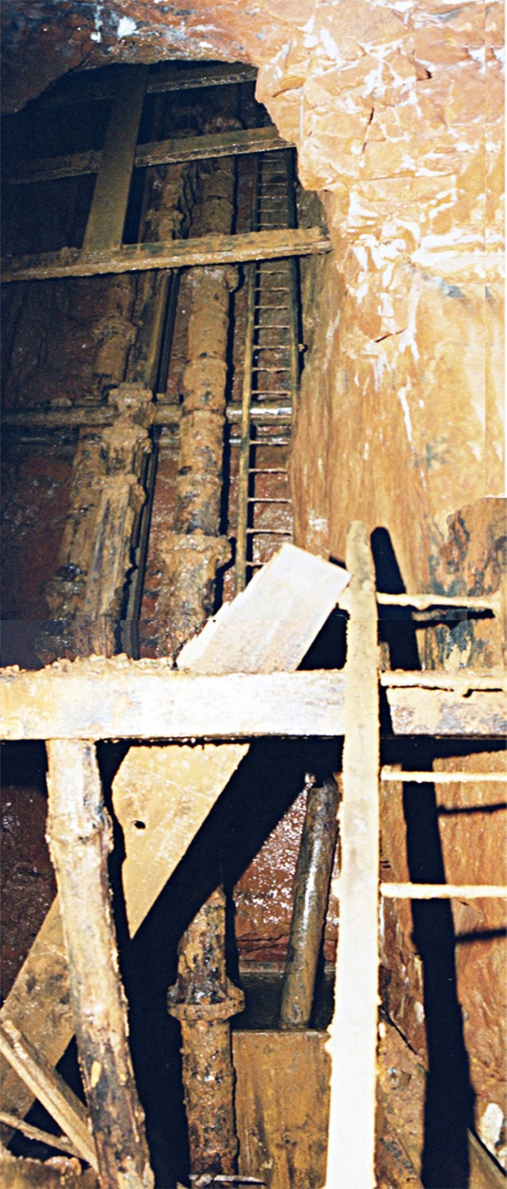 About 1996 there was a massive fall in Endeans shaft which not only took away all of the ladders and other shaft timberwork but also blocked the shaft at the 24 fathom level.