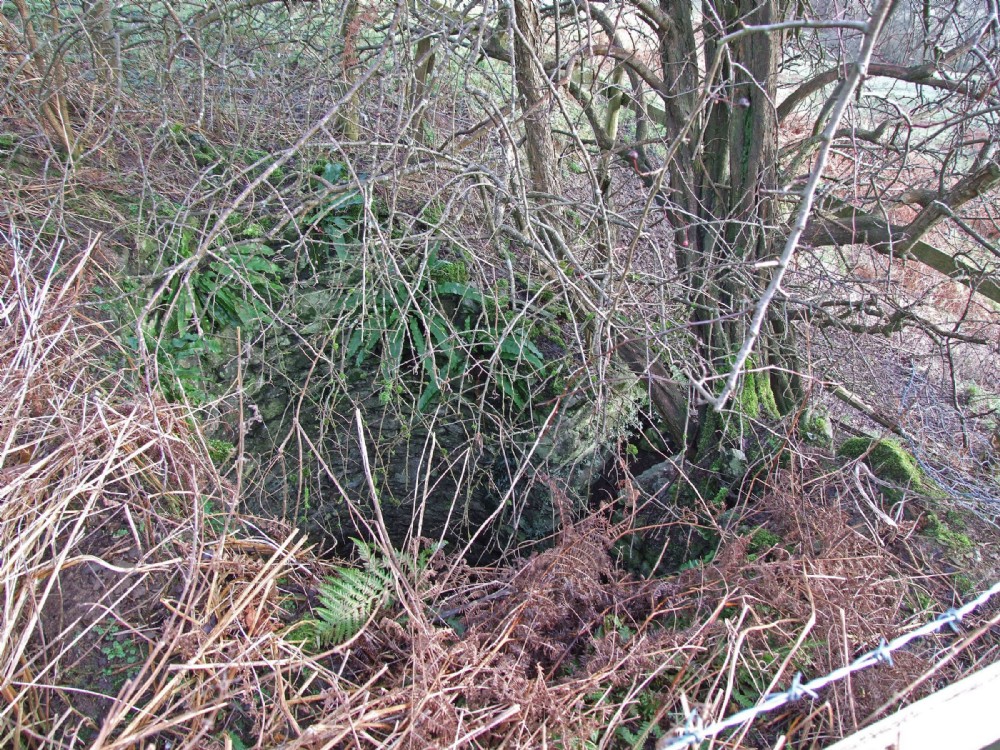 Even in winter with the lack of foliage the features are difficult to discern. But on the right behind the tree is a made up stone bob plat, the angle bob would have been driven by either flat rods or wire rope from the engine house immediately downhill.