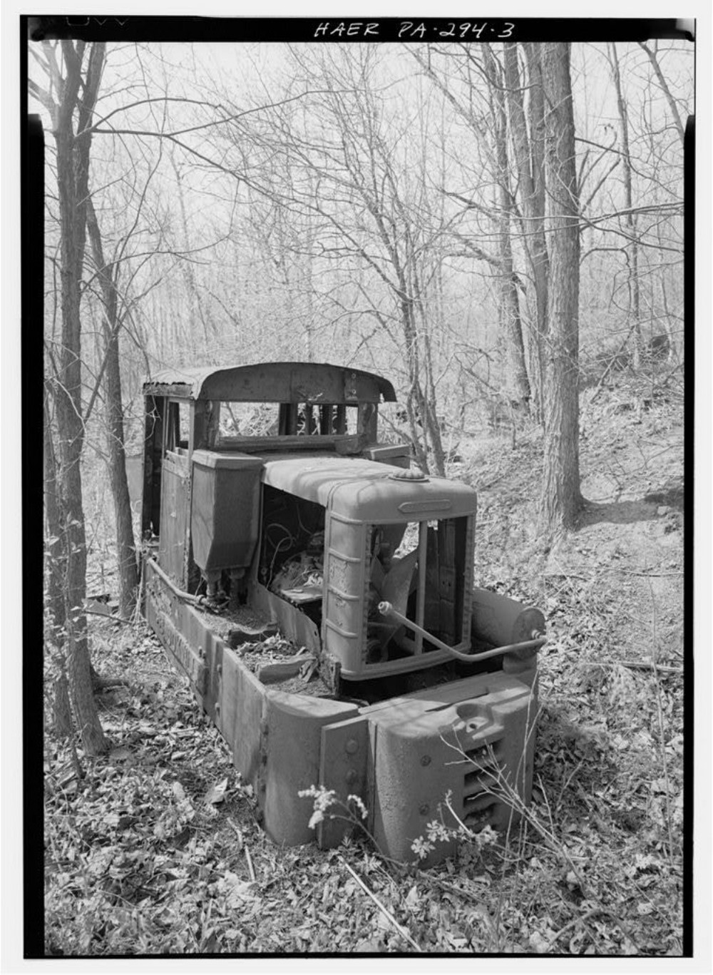 VIEW OF BROOKVILLE MINE LOCOMOTIVE EAST OF THE MINE ENTRANCE.