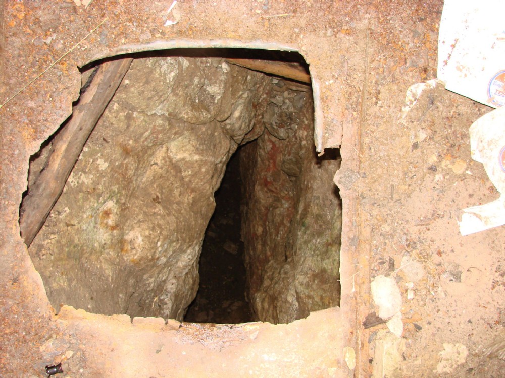 View down the entrance shaft. You can just make out the steeply sloping pile of rubbish mentioned in COTPD.