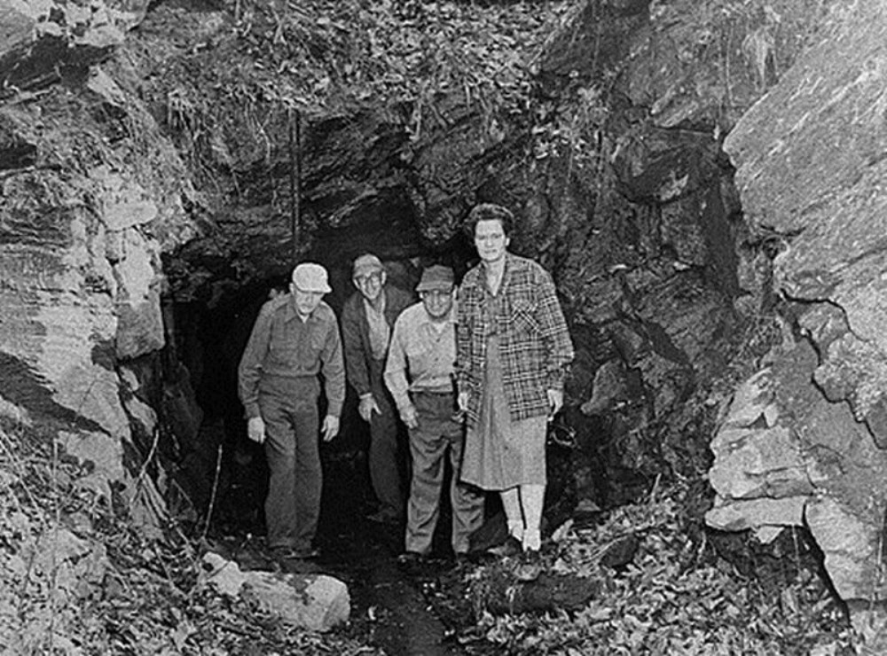 Photograph of entrance to Calhoun Goldmine, Lumpkin County, Georgia, 1955 Owner of mine John C. Calhoun of South Carolina