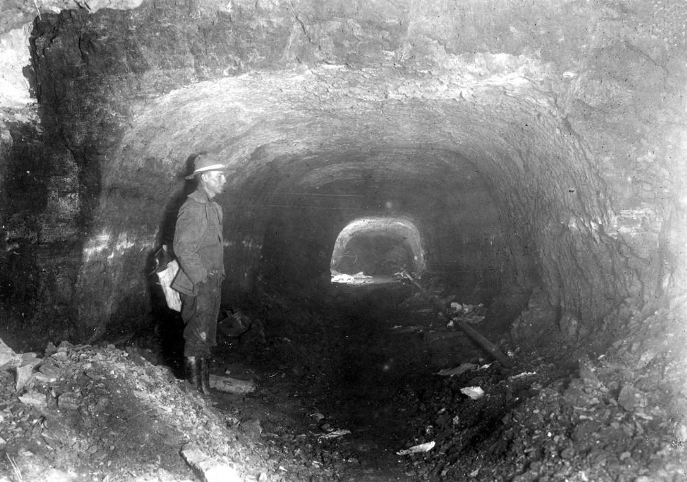 Original entry of Utah Mine, Pleasant Valley, cut about 1880 by Chinese hand labor. Even arch of roof, now used as air-course. Carbon County, Utah. Not later than 1926.