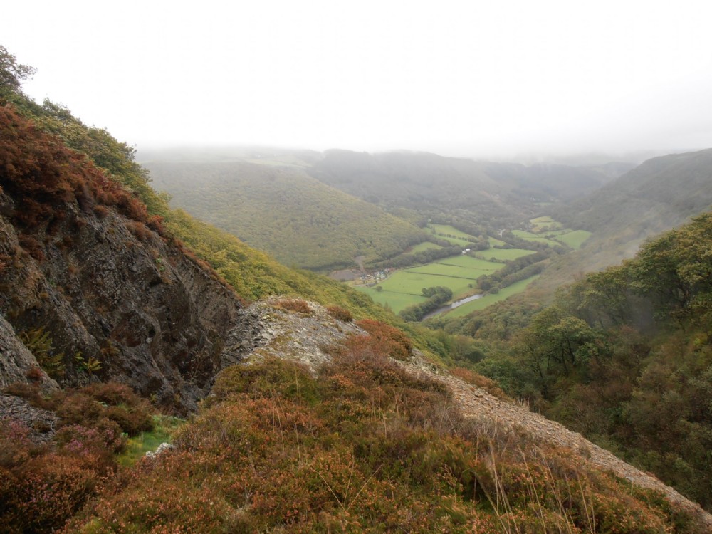 The open cuts and the views beyond. Caegynnon mine is seen on the valley floor.