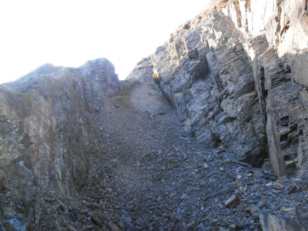 The open cuts at the top of the ravine, under which the coffin-level and Murlwyd adit were driven.