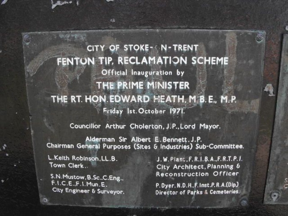 Plaque on a coal tub to mark the inaguration of the Fenton Tip Reclamation Scheme in 1971