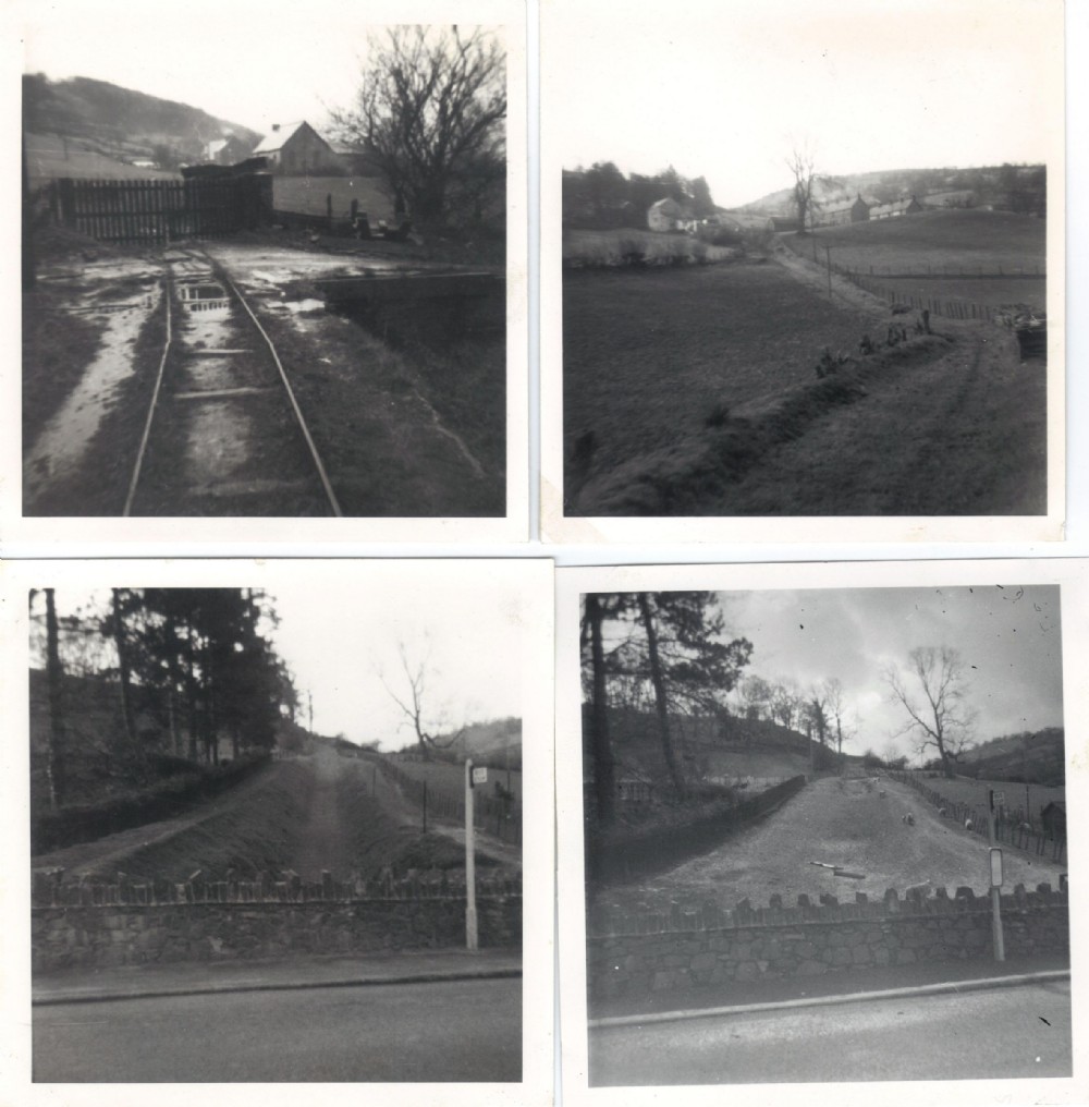 There are three inclines on the track, the first departing the rail-yard, the second above the Deeside Slab Quarry and third at the underground workings. These are the only sections where track was double, all else was single. (The photo on the right is April 1965). Sleepers were generally 54"x6"x2"On the inclines full wagons were lowered using a friction braking system and at the same time raised empty wagons on the return trip. The bottom left photo was April 1961 when the underpass was still open, but after closure and with heavier road traffic the underpass was filled. There was about a 1:4 gradient on this incline.