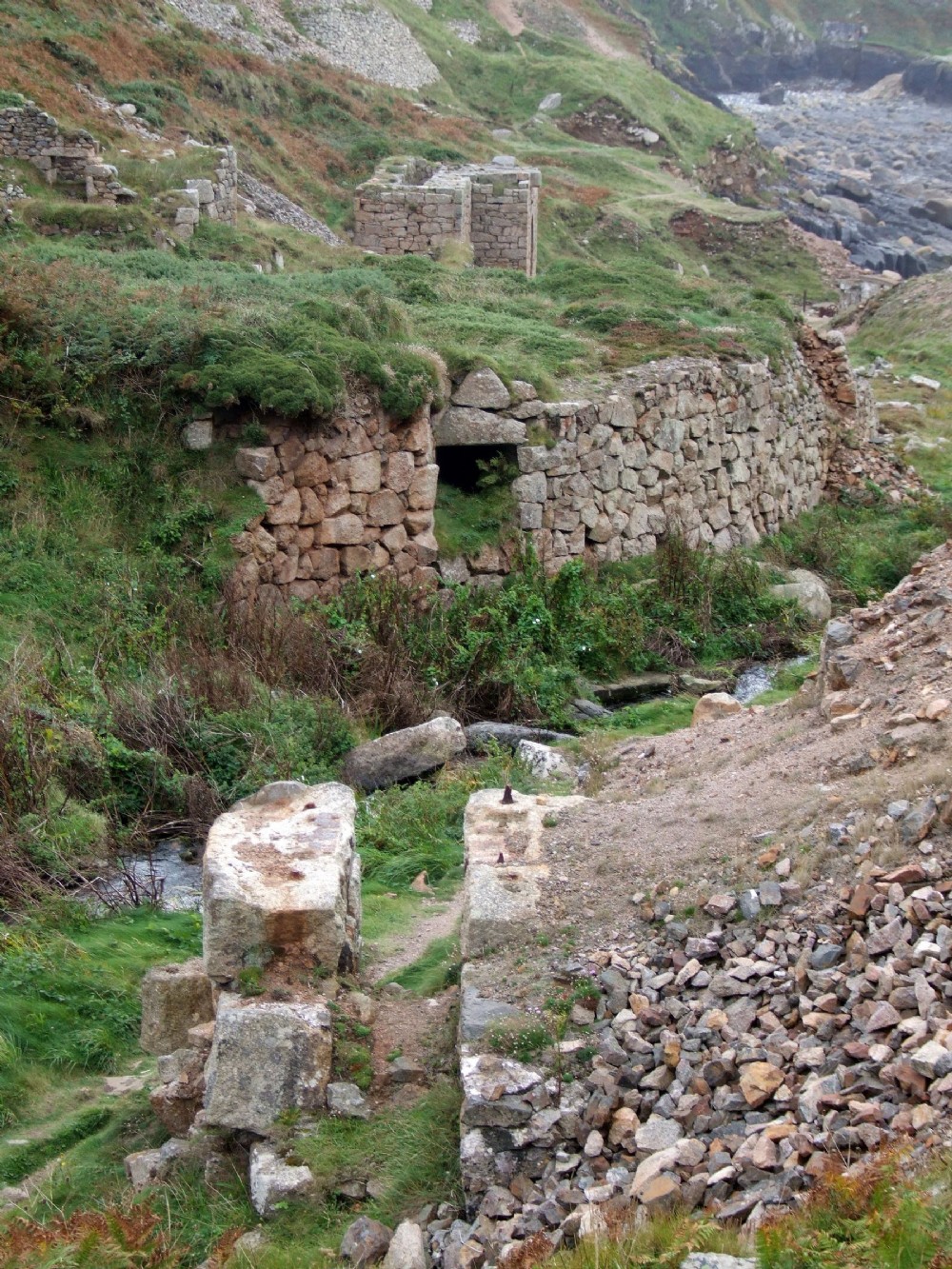 This is the route of the flatrods that ran from the waterwheel to the Engine Shaft. View from Engine Shaft bob plat.