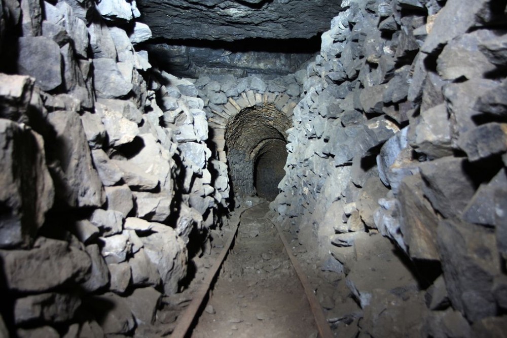 One of the smallcleugh flats which has been backfilled with waste rock leaving only the haulage way through the middle open.