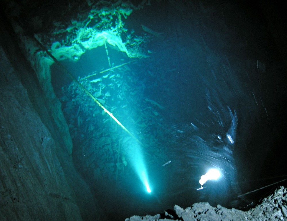 Toadstone's camera gear lights up the flooded chamber. Some metalwork is visible in the gloom.