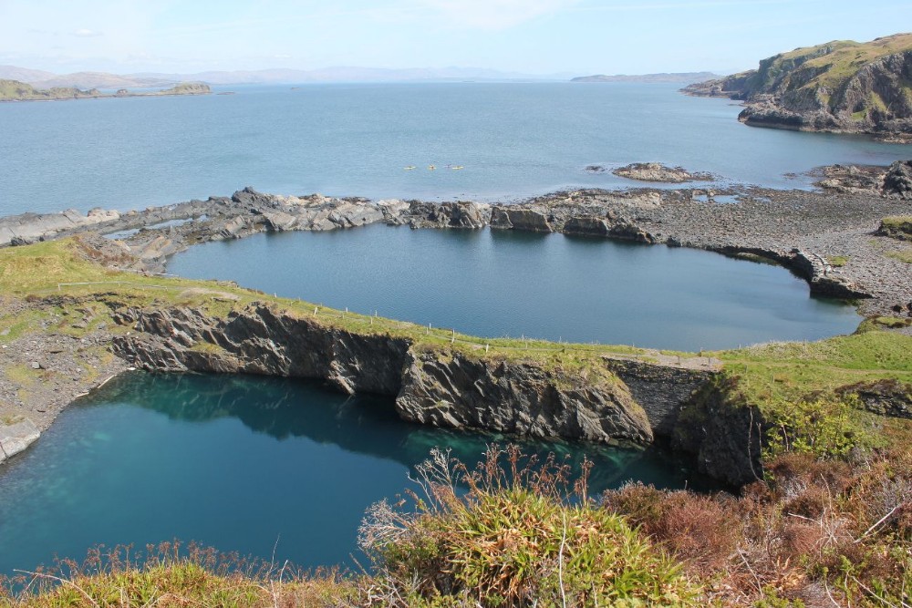 Closest quarry is 'Creag a monadh' or quarry of the hill. Further side of the causeway is the 'Creag na uam' or Cave Quarry, this one was also known as the Windmill quarry because it had wind pumps to keep the workings from flooding.