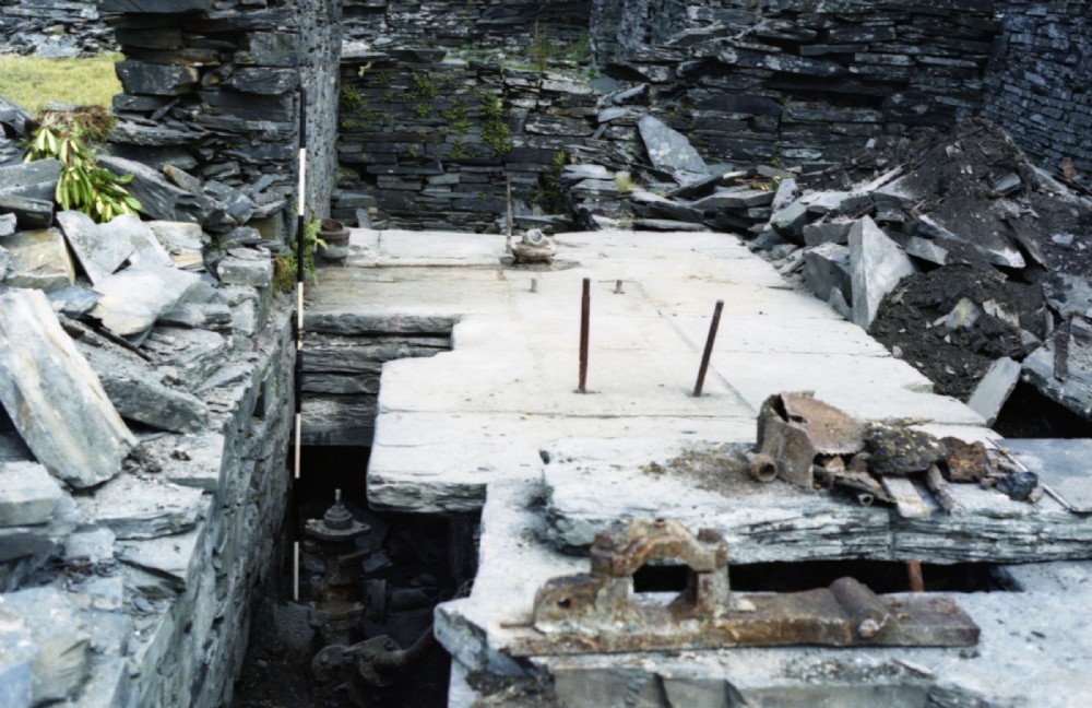 These are the remains of the engine bed looking east. We eventually deduced that one of the main masonry slabs had been moved at some time, possibly when the pump visible on the left hand side was installed.