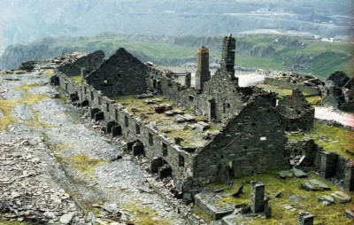 Just in front of the office can be seen the weighhouse (with the blocked up window) of the Floor 6 adit. Cutting through the old stacking yard is the modern raod.