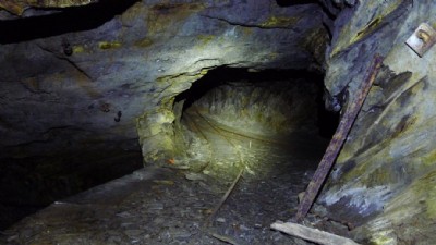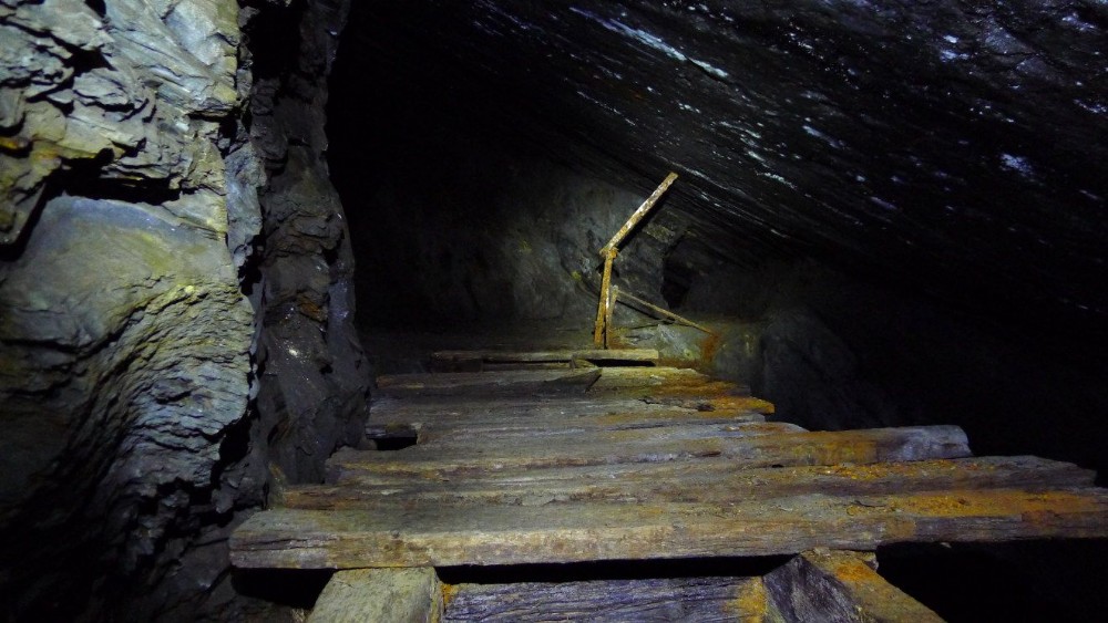 Looking from the BVI side towards the Westerly workings. The chamber containing the base of the manway is on the other side of this bridge
