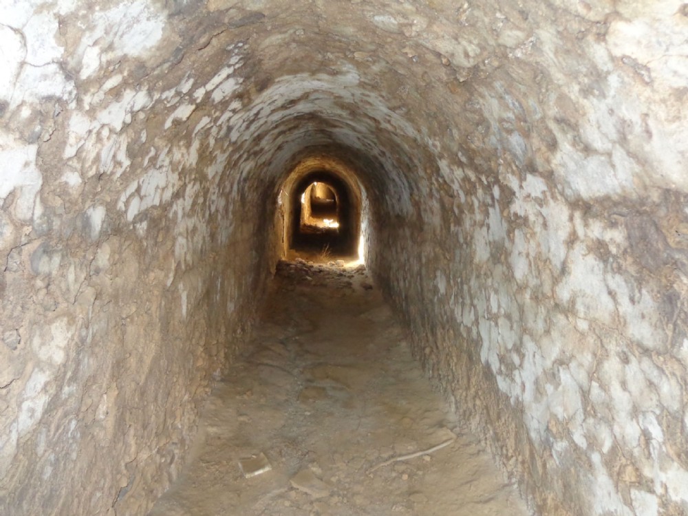 Looking along a straight section of flue, illuminated at intervals by the side openings. This one seems to be particularly well-built.