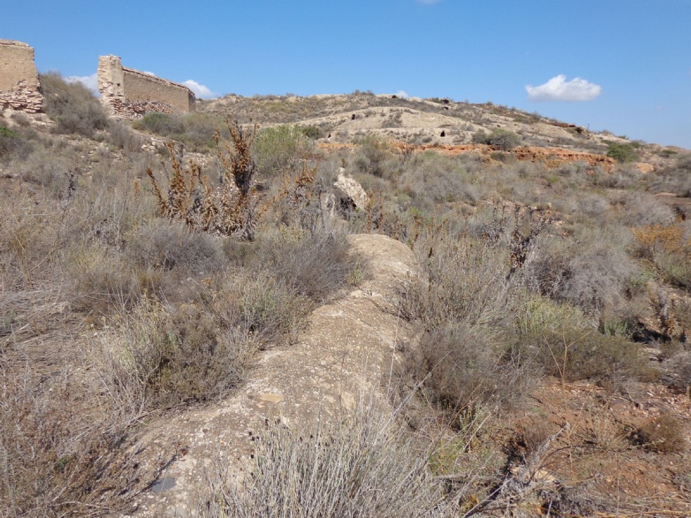 Small diameter flue winding up the hillside on the west side of the site and leading to the base of the small chimney on top of the ridge
