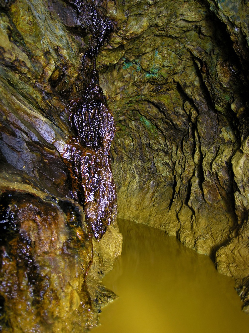 Formations in a level on the xx fathom level at Parys Mountain copper mine.