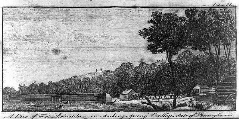 Print shows Fort Robertdeau at the lead mines in Sinking Spring Valley in Pennsylvania.