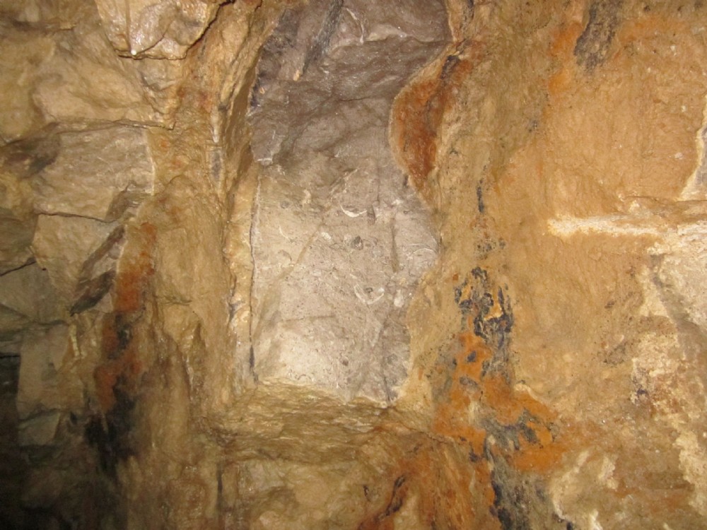 A small section of limestone in the fluorspar section of the mine exhibiting fossils