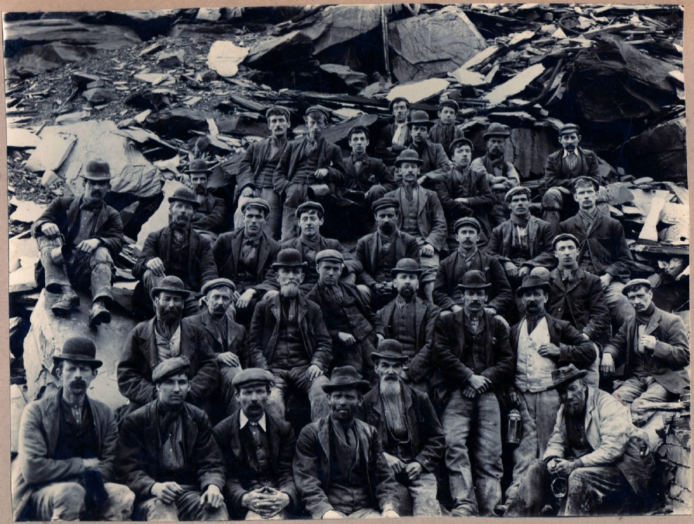 Fotty approx 1900. Note the men wearing hard bowler hats worked underground.