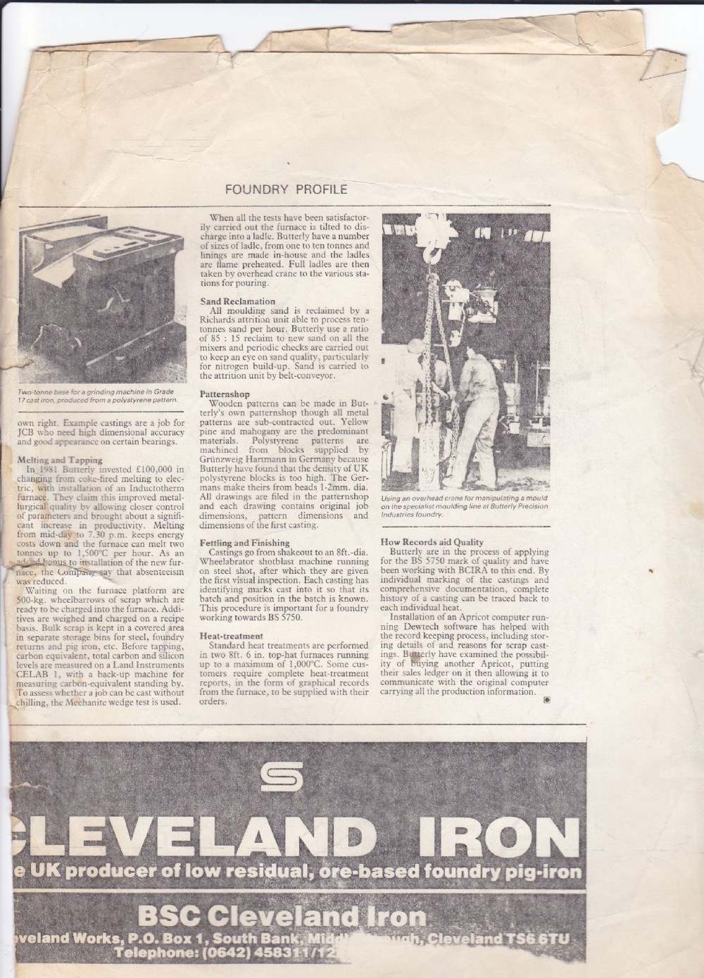 Article from 'Foundry Trade Journal' with profile on Butterley Foundry which closed in 1986
