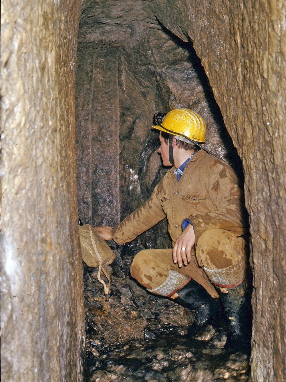 Photographed at a point where the sough takes a turn to the right. The forefield, straight ahead, well illustrates the method of working with three grooves (only two visible) cut down the face.