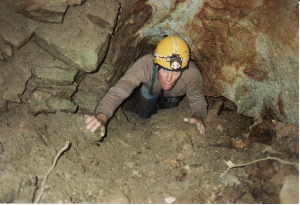 Alan Tomlin exits the adit at Frementor 12/7/1989.