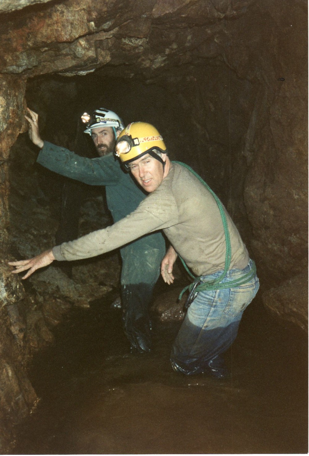 Steve Wadlan 9left) and Alan Tomlin in the adit of Frementor 12/7/1989.