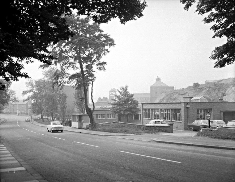 Taken around closure. Newer style buildings possibly from the NCB era and large spoil heap to the left. whilst the down cast headstock and massive winder house and smaller upcast shaft dominate the skyline in the centre.