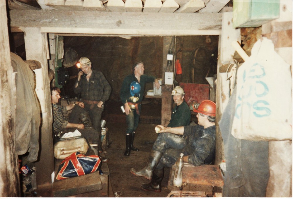 The 'Garage' 15 level. Left to right ?, Dave Cunnick, Alan Tomlin, G.C, ?,. 19/5/1990.