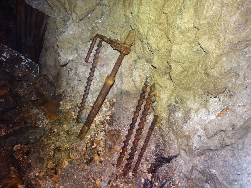 A hand borer and bits abandoned in the west vein workings.