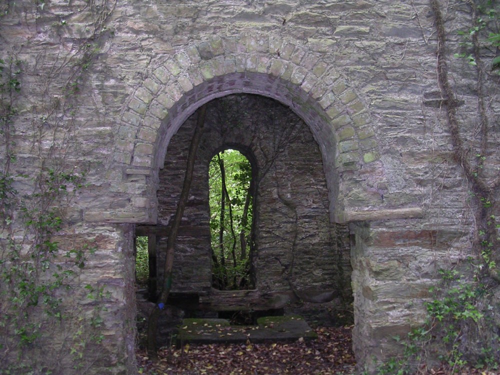 Brick arched entrance to the 1895 engine house. Showing the arched opening in the west wall over the balance box.