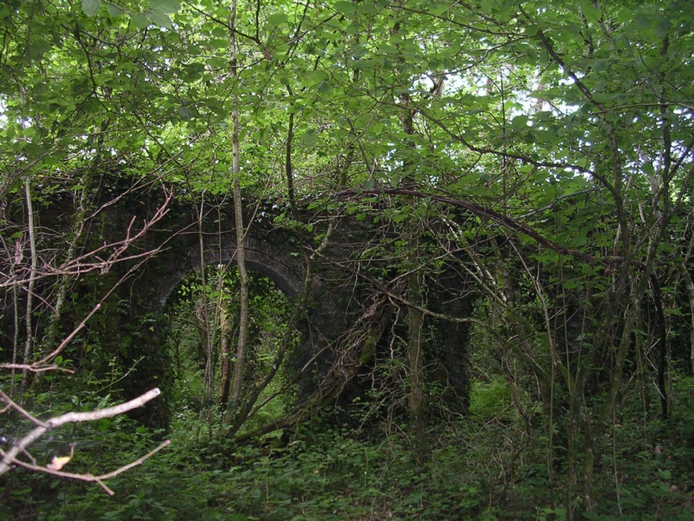 Two brick arched doorways in the east wall of the Cooperage, taken from inside.