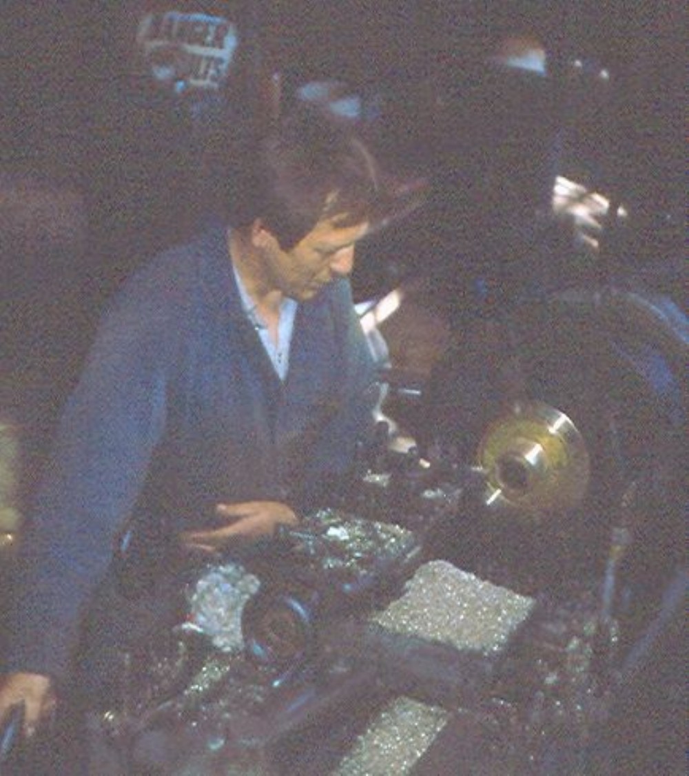 Roy Angove facing off a balance disk for a multi-stage centrifugal pump.