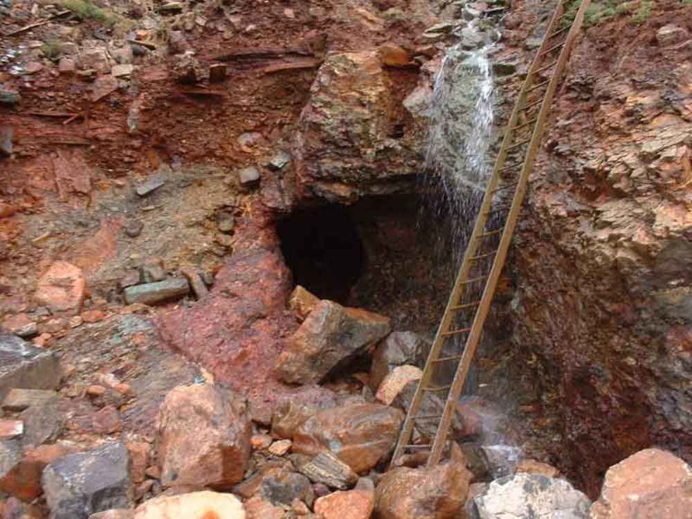 This is what the portal looked like in March 2008 after heavy storms had driven large boulders into the adit and eroded the material around the portal. Since this time the small pillar of ground on the left has collapsed and much material run from above.